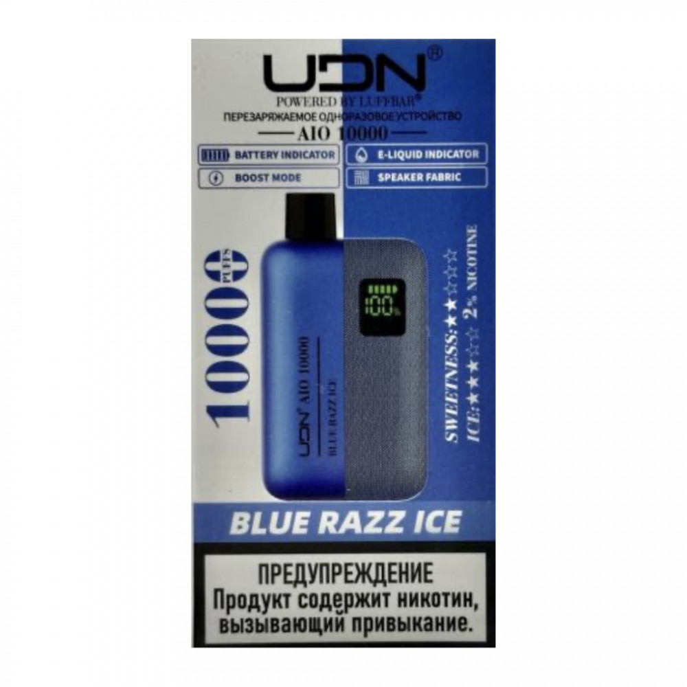 UDN видыAIO 10000 UDN вкусыЧерника Малина Лёд UDN количество в блоке10 шт