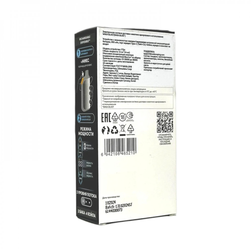 На складе Код товара: WAKA BLAST 38000 Hard - Лимон лайм + ментол микс